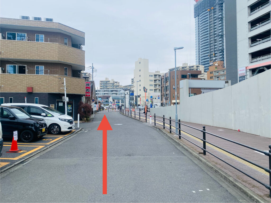 ファミリーマートを背にしてまっすぐ進みます。